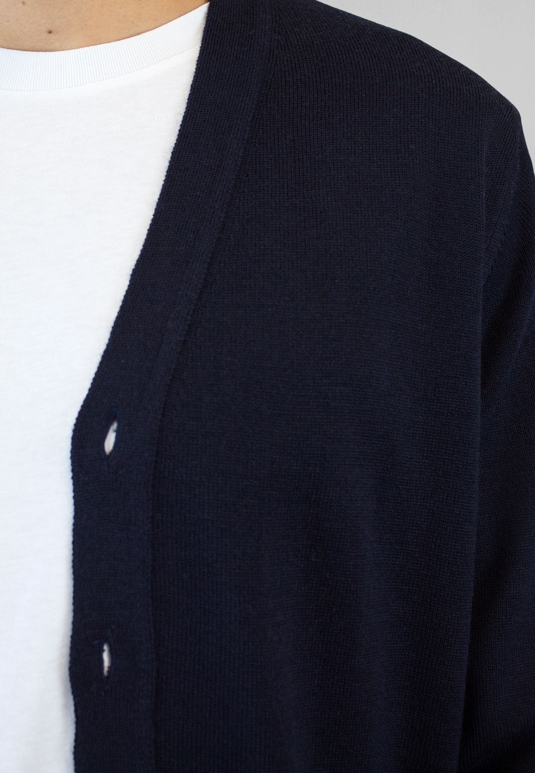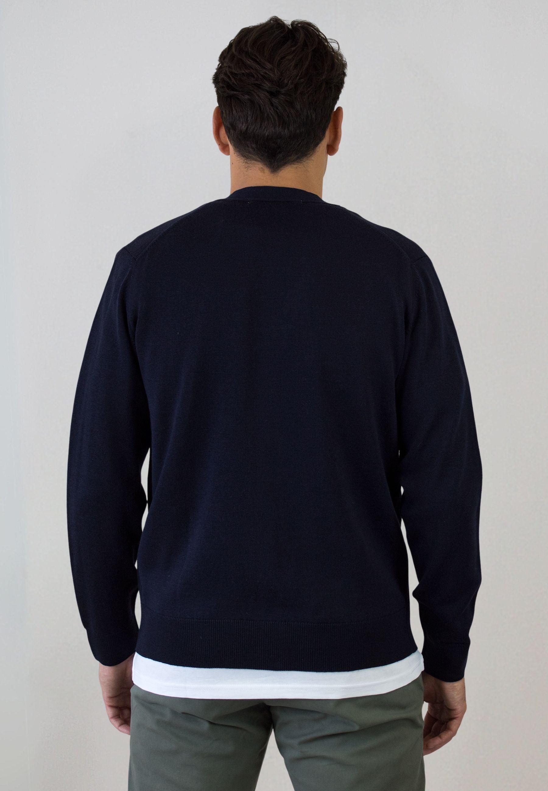 Rebeca azul marino con lana, hecho con mimo en España, concretamente en Logroño. Confeccionado para durar mucho, y sin bolillas.
