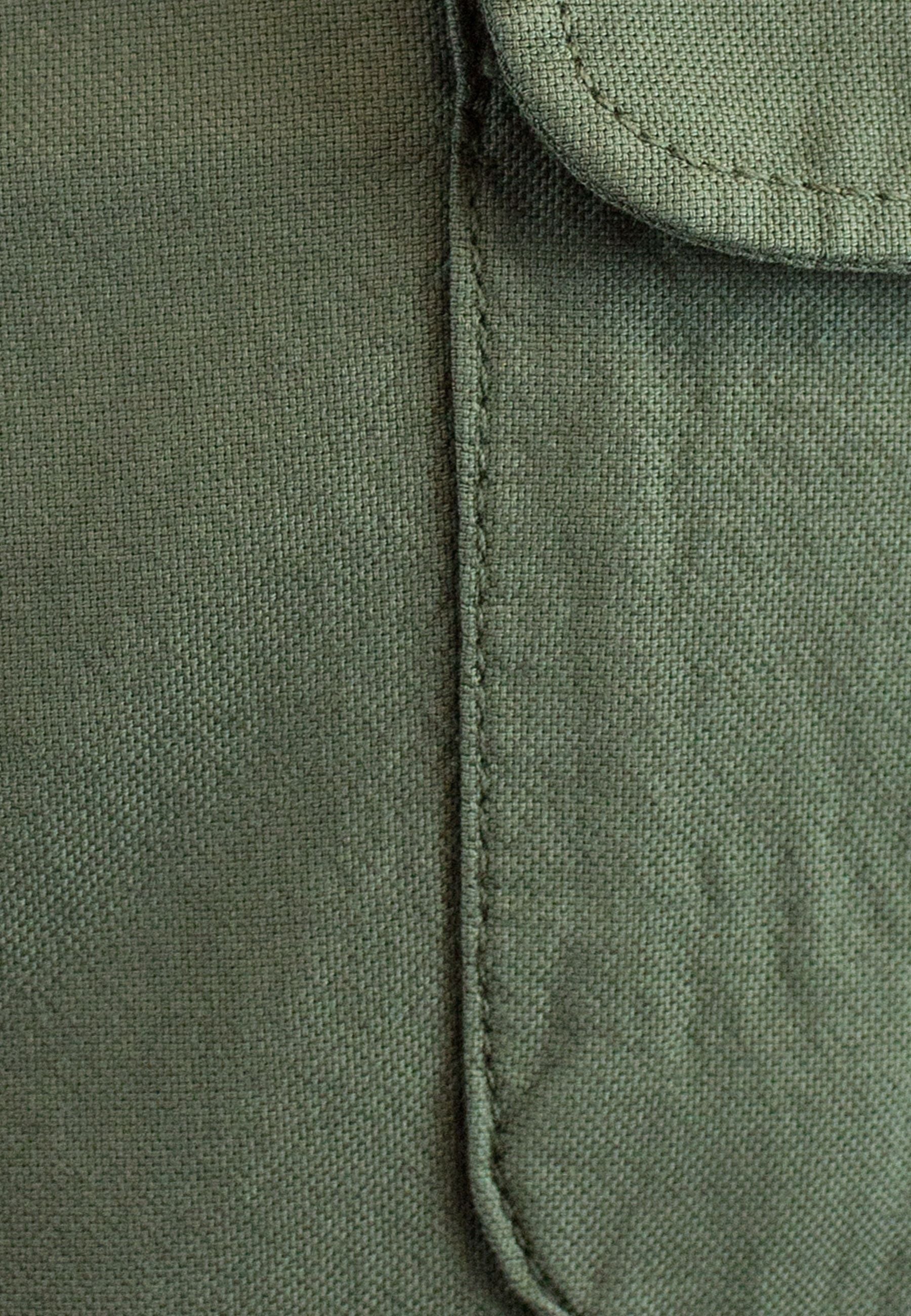 Camisa con bolsillos kaki, confeccionada con un tejido único, 70% algodón reciclado y 30% algodón orgánico. Además, está confeccionada en nuestro PROPIO TALLER, con energía renovable 100%.