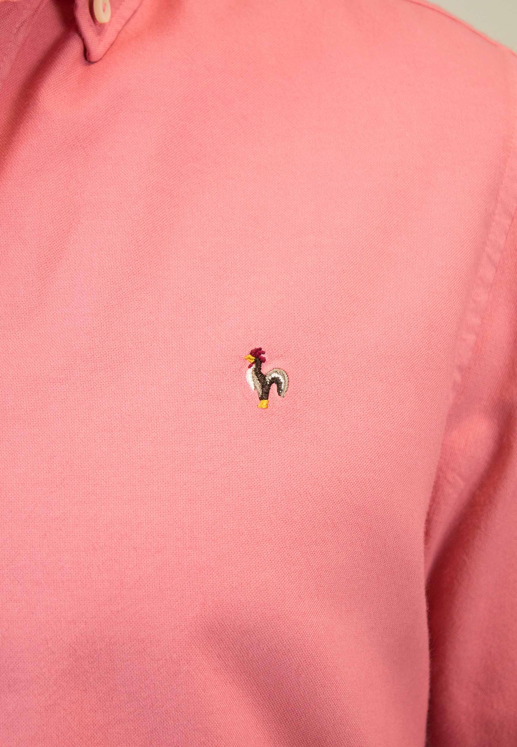 Cuello abotonado, con botón, manga larga, detalle de botón final con el nuestro logo y bordado en el pecho.