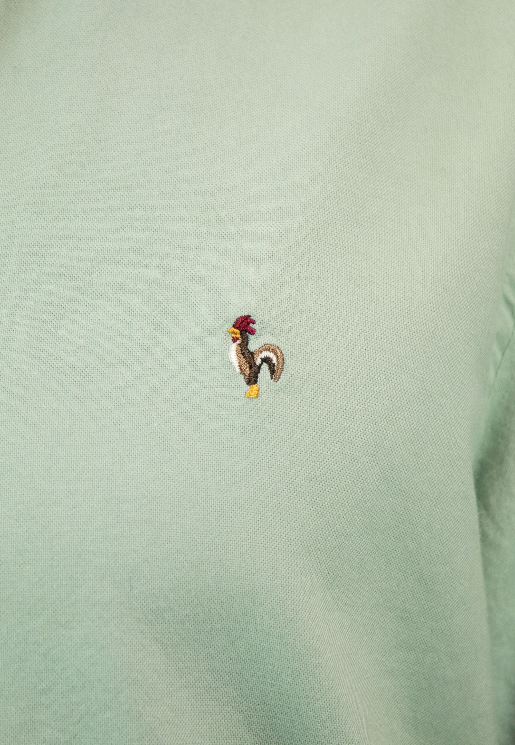 Cuello abotonado, con botón, manga larga, detalle de botón final con el nuestro logo y bordado en el pecho.