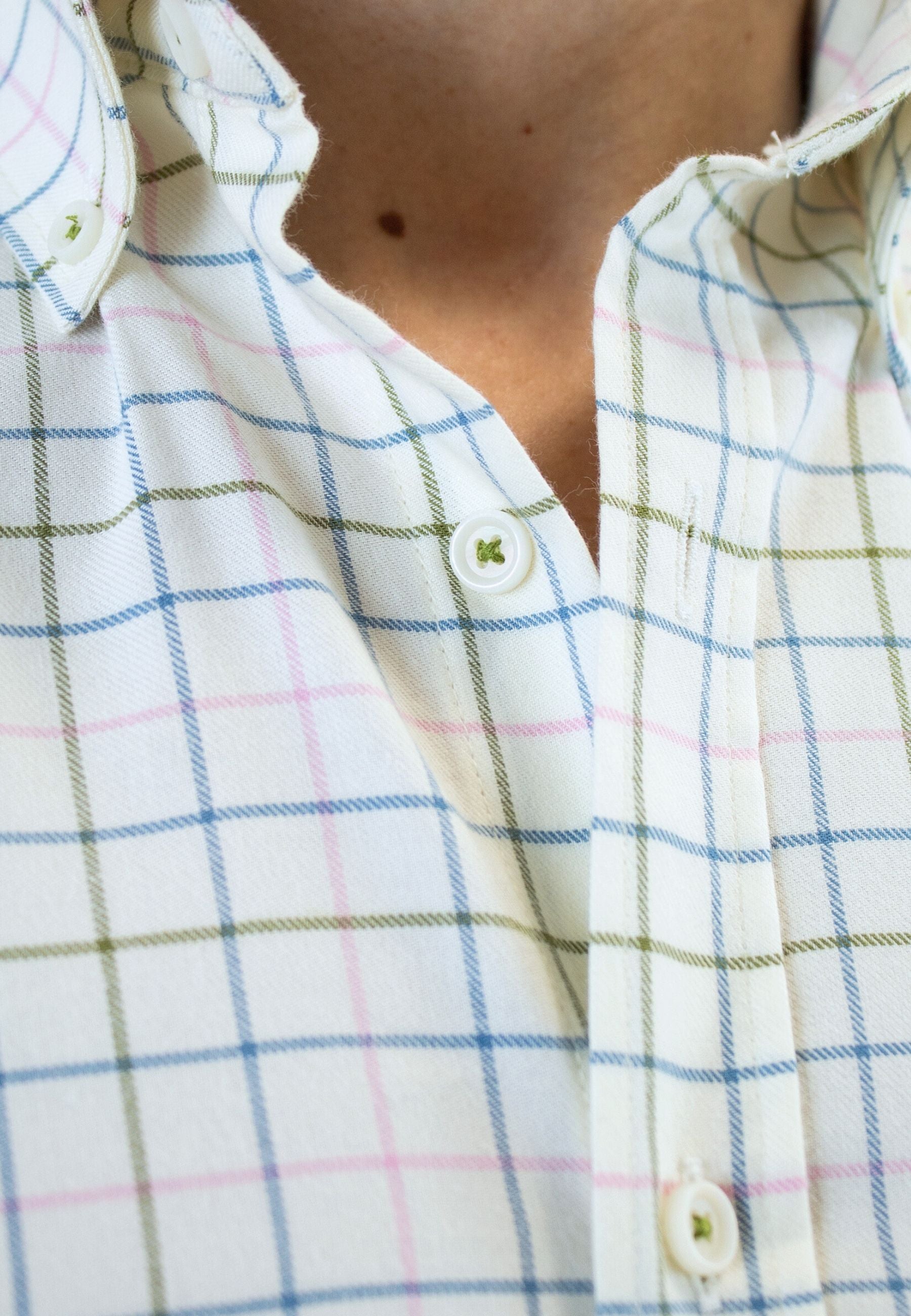 Camisa de cuadro en tonos crudos confeccionada en tejido 100% algodón, ideal para el otoño-invierno. Además, está confeccionada en nuestro PROPIO TALLER, con energía renovable 100%.