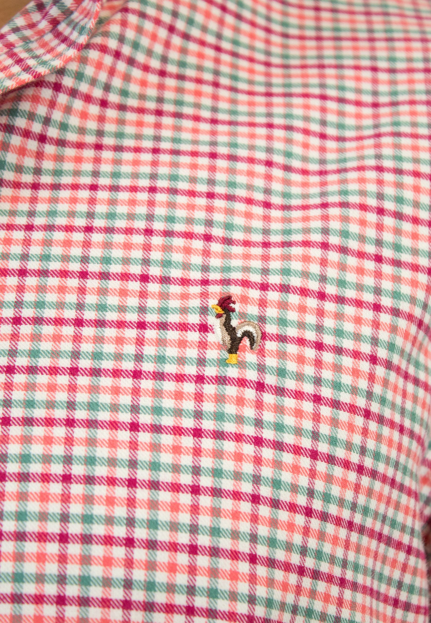 Camisa vichy en naranjas confeccionada en tejido 100% algodón, ideal para el otoño-invierno. Además, está confeccionada en nuestro PROPIO TALLER, con energía renovable 100%.