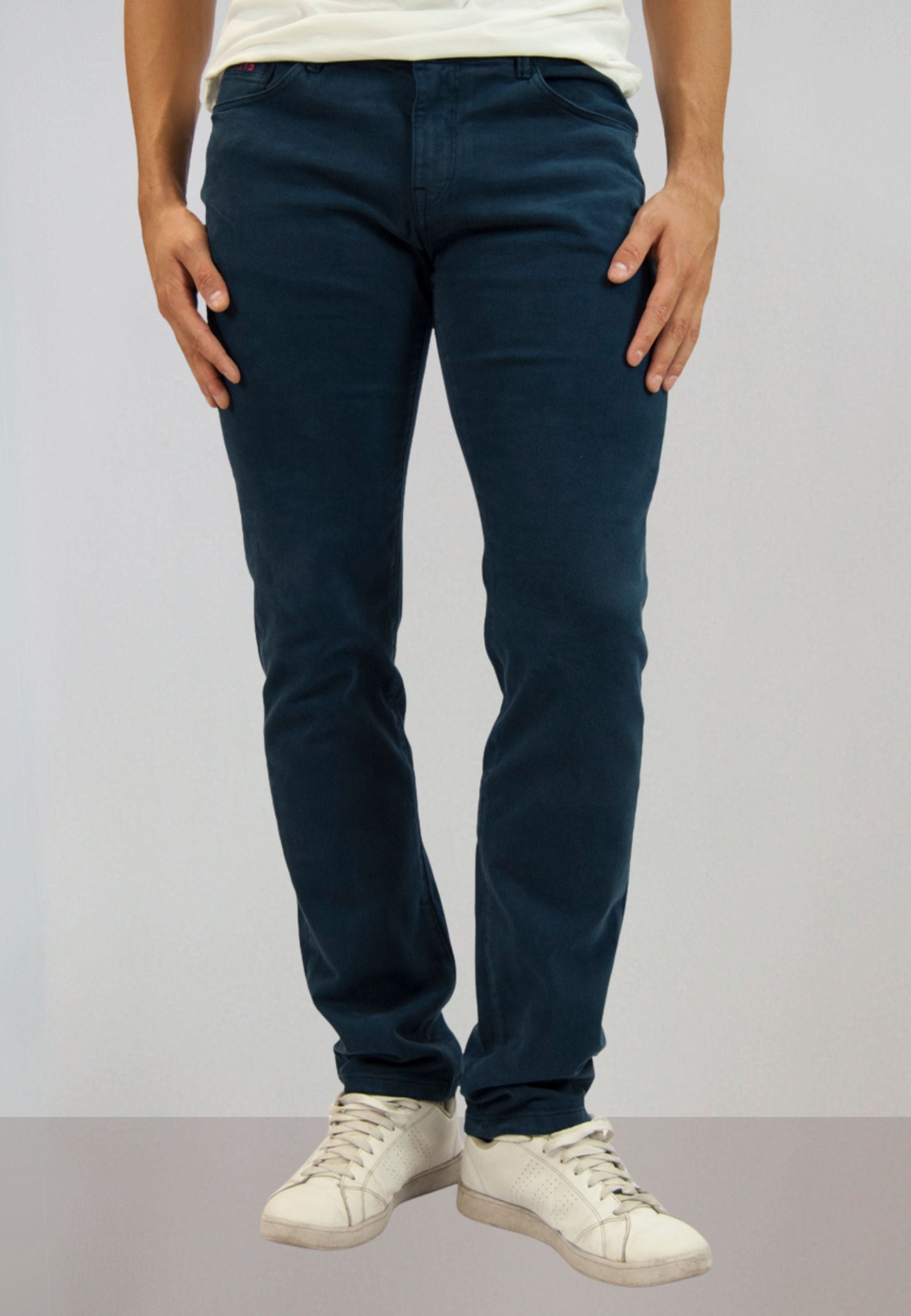 Pantalón cinco bolsillos marino para hombre de calidad muy cómodo debido a un pequeño porcentaje de elastano (3%).