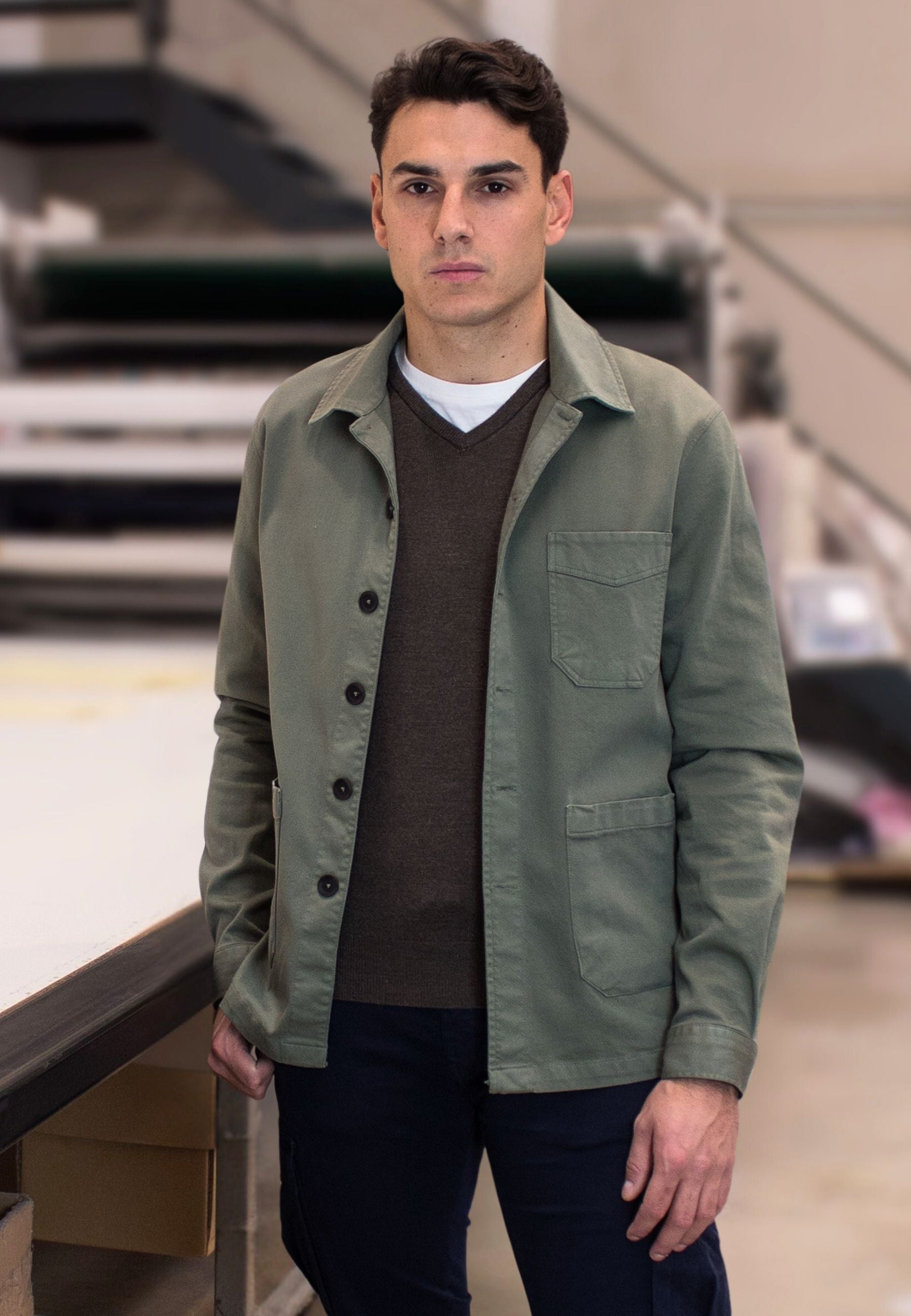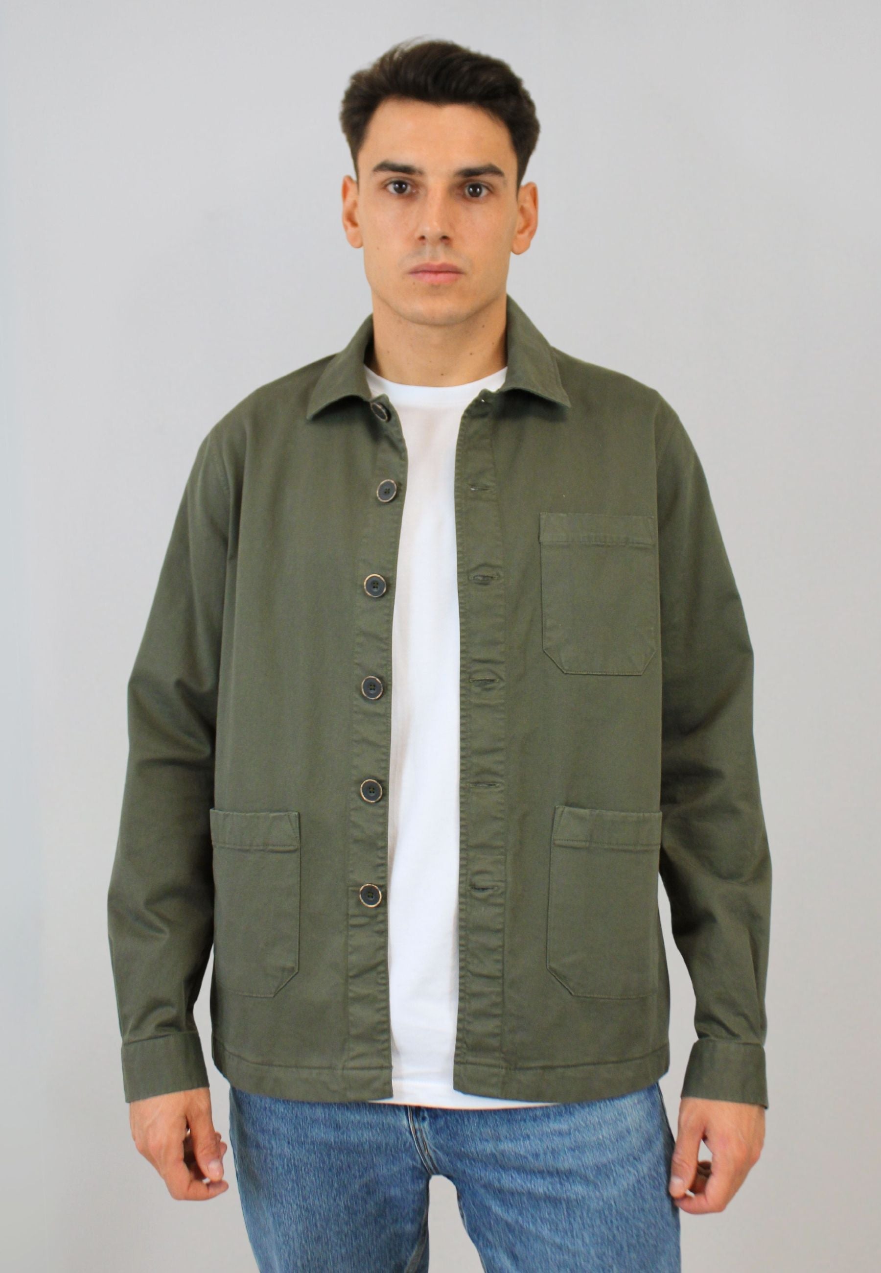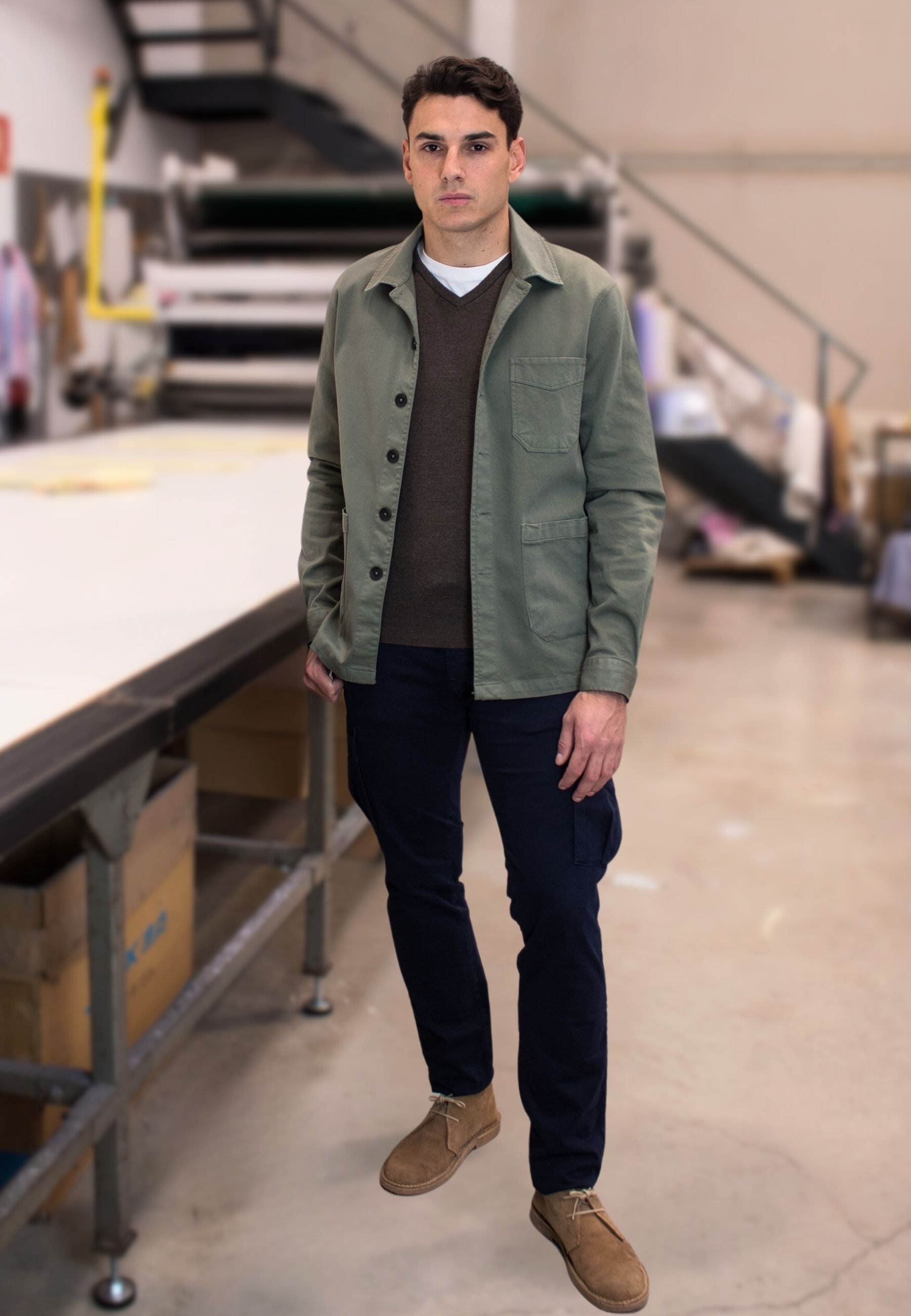 Sobrecamisa en sarga kaki con bolsillos confeccionada en tejido 100% algodón, es perfecta para entretiempo e invierno.