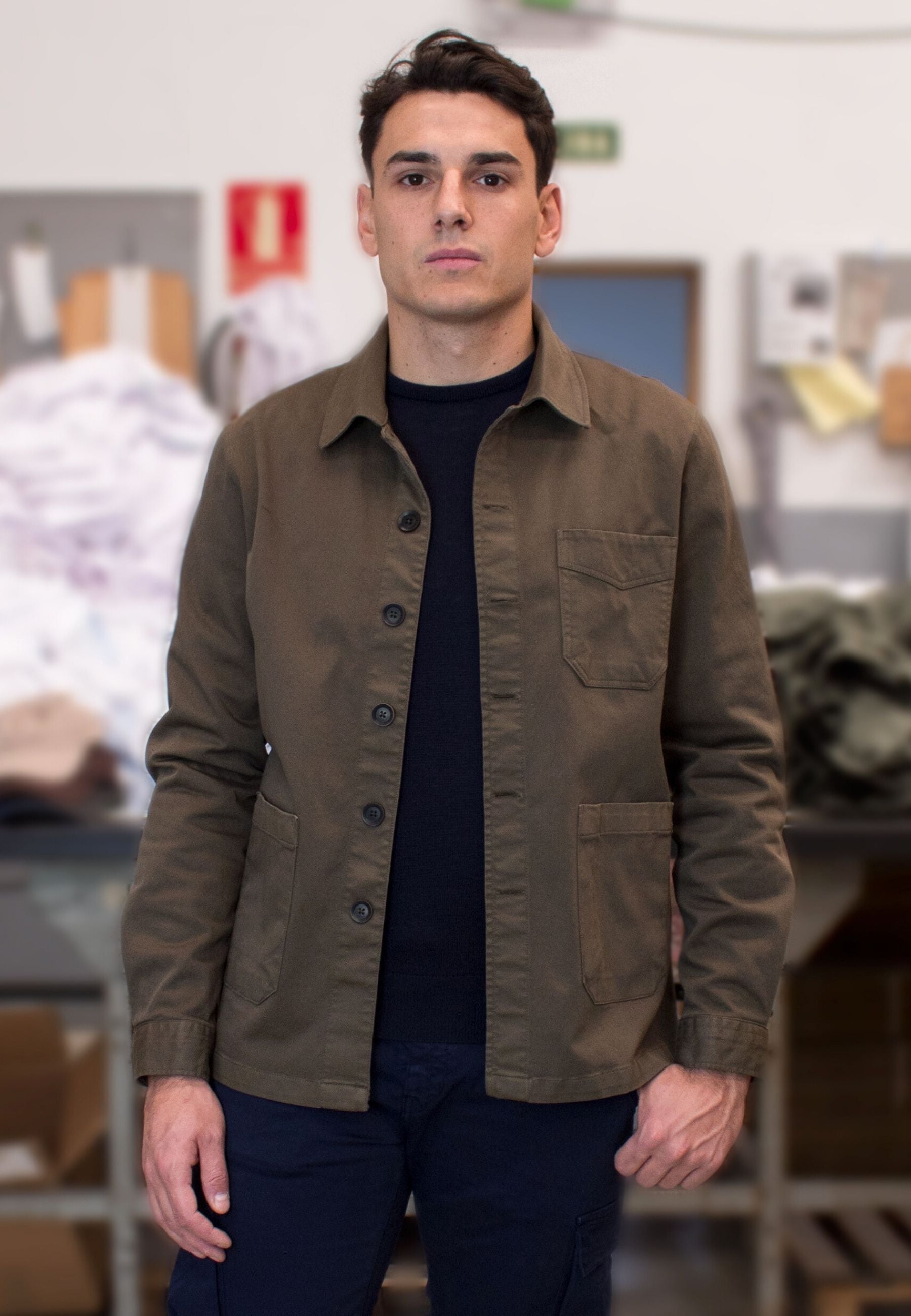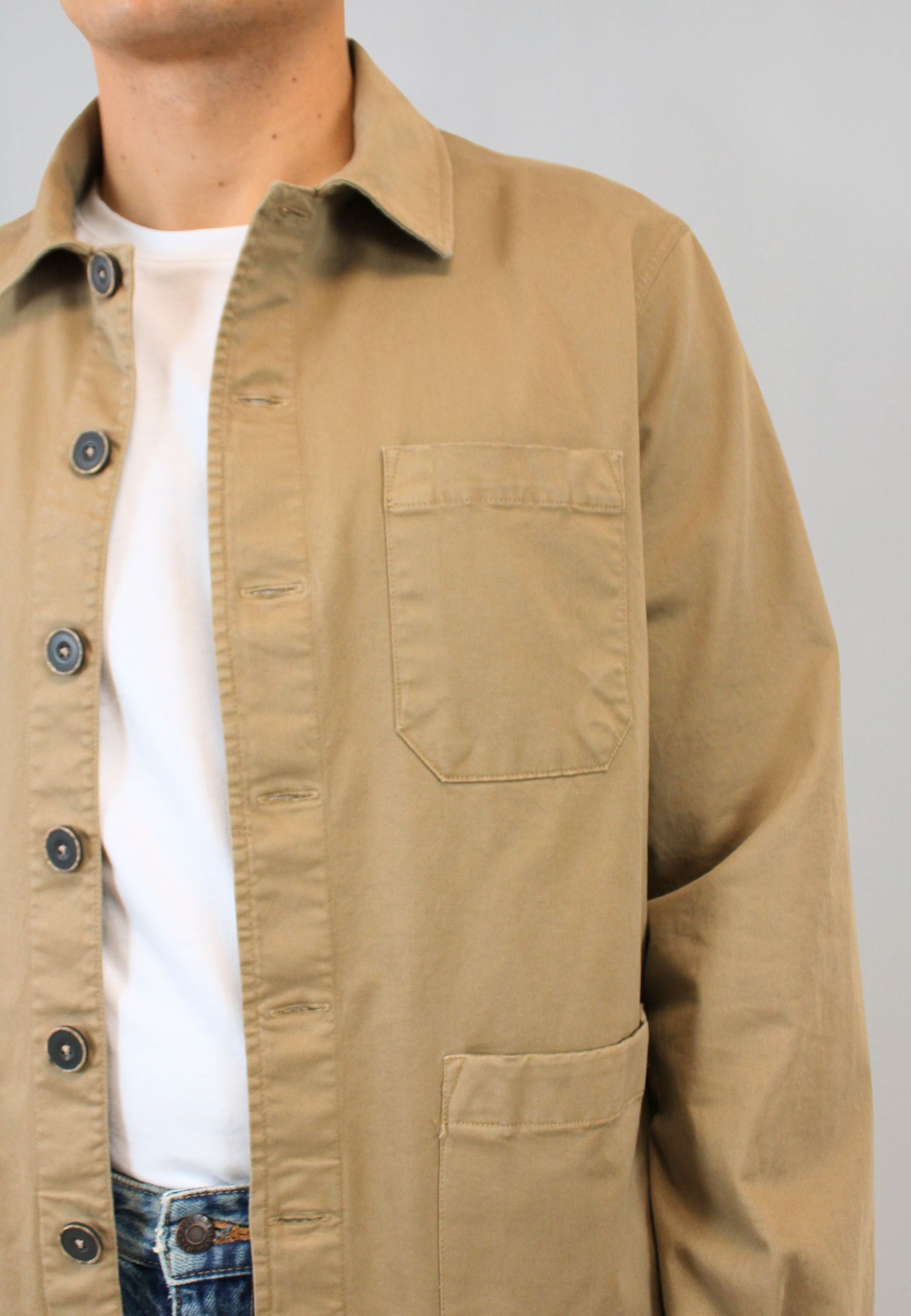 Sobrecamisa en sarga tostado con bolsillos confeccionada en tejido 100% algodón, es perfecta para entretiempo e invierno.
